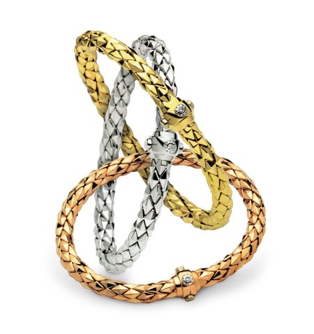 Szczególnym zestawieniem jest komplet trzech różnokolorowych bransolet, które w tradycji jubilerskiej symbolizują: Przyjaźń (złoto białe), Wierność (złoto żółte) i Miłość (złoto czerwone). I tak jak w życiu, w którym Miłość, Wierność i Przyjaźń od zawsze sobie towarzyszą i wzajemnie przenikają, tak w tym szczególnym zestawieniu wyrobów kolekcji STRETCH połączenie trzech kolorów złota tworzy nierozerwalną, niezwykle harmonijną całość i zaskakuje nietuzinkowym wyglądem.